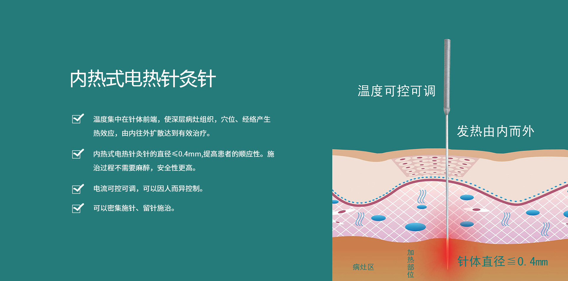 • 內熱式電熱針灸針